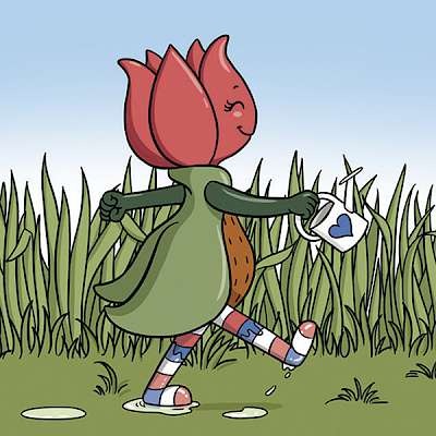 TillyTulp’s first story is depicted exclusively in illustrations which makes it universally understandable. The story tells you how TillyTulp escapes from the cutting of her flower and why it is that she always carries a watering can with her.