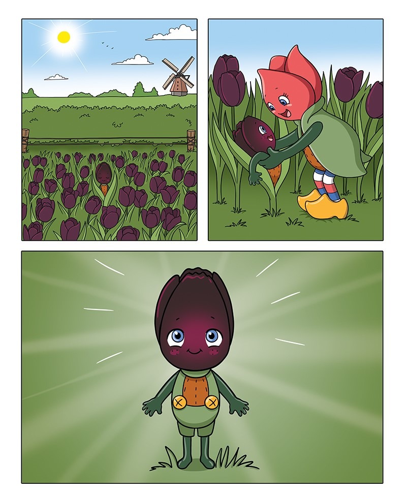 TillyTulp is very happy with her beautiful house and garden, but she is missing something... She decides to go out into the world to look for some friends. She loses some, but some also become very special friends, such as a very special little bulb. This one grows out to be a beautiful black tulip; Teddy.